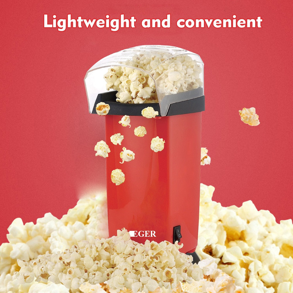 La máquina de palomitas funciona con aire caliente circulante, por lo que no hay aceite ni mantequilla grasientos. Esta máquina hace palomitas frescas y crujientes que son más saludables que las palomitas de microondas, ya que no contienen BPA.