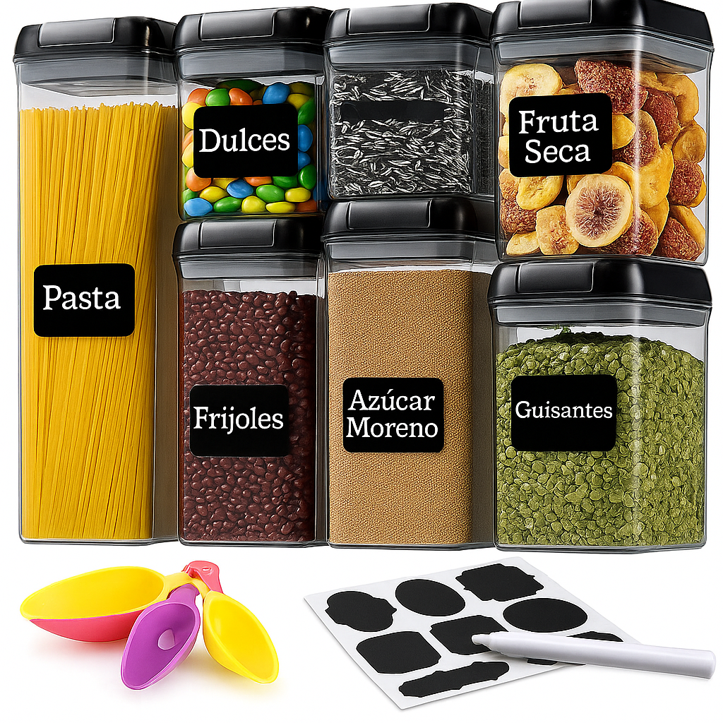 Juego de 7 Contenedores Herméticos + Tiqueteras