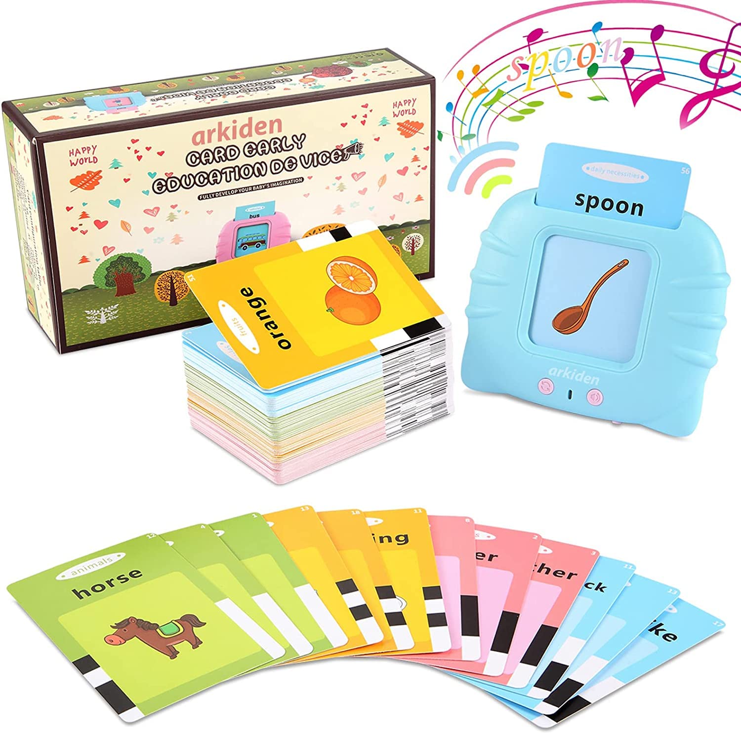 Con 112 tarjetas dobles que incluyen dibujos coloridos, sonidos y palabras en inglés.